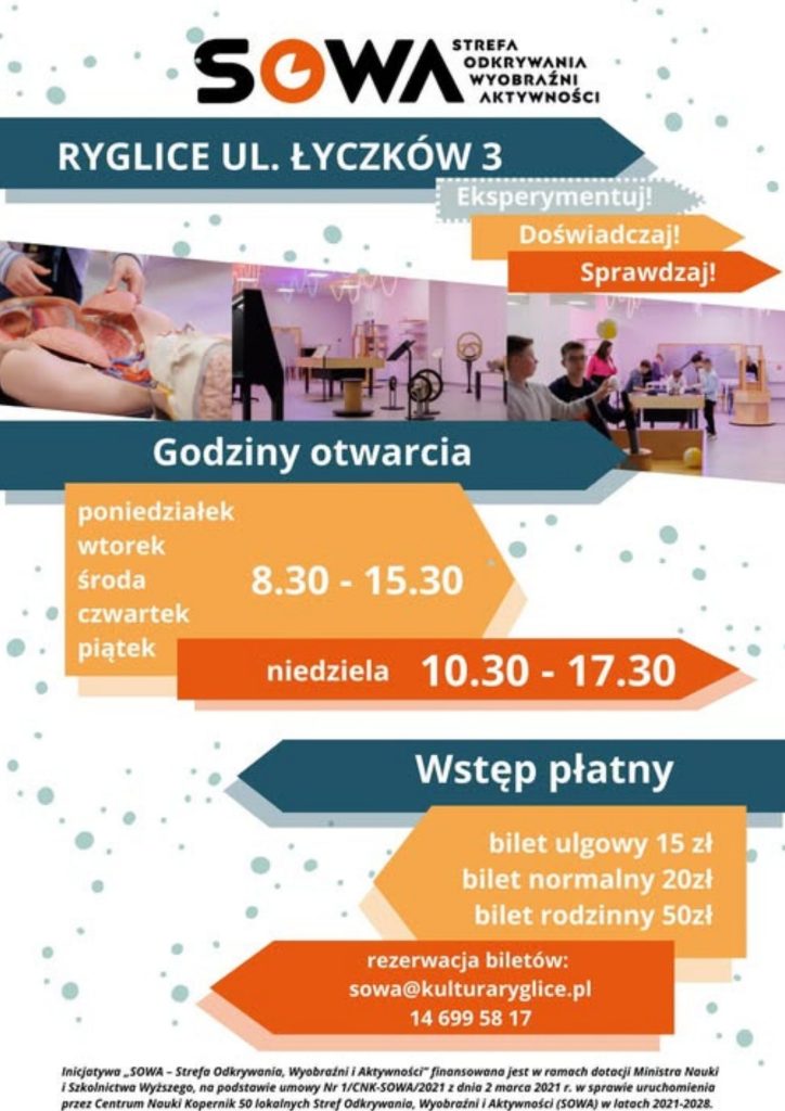 „SOWA” w Ryglicach powstała dzięki współpracy Centrum Nauk Kopernik, Ministerstwa Nauki i Szkolnictwa Wyższego, Centrum Kultury w Ryglicach oraz Gminy Ryglice.
